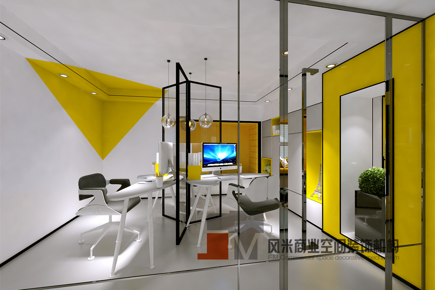 大多數(shù)的辦公空間設(shè)計(jì)最適宜的風(fēng)格就是現(xiàn)代簡約風(fēng)格。尤其是背景色的選擇,搭配上現(xiàn)代的幾何形圖案,將現(xiàn)代化公司的干凈利落快捷表現(xiàn)的淋漓盡致。白色與黃色的搭配,不僅顯人情味,更多的迎合了快節(jié)奏,搭配上幾株或大或小的花藝綠植,極簡現(xiàn)代的辦公空間軟裝設(shè)計(jì)就誕生了。