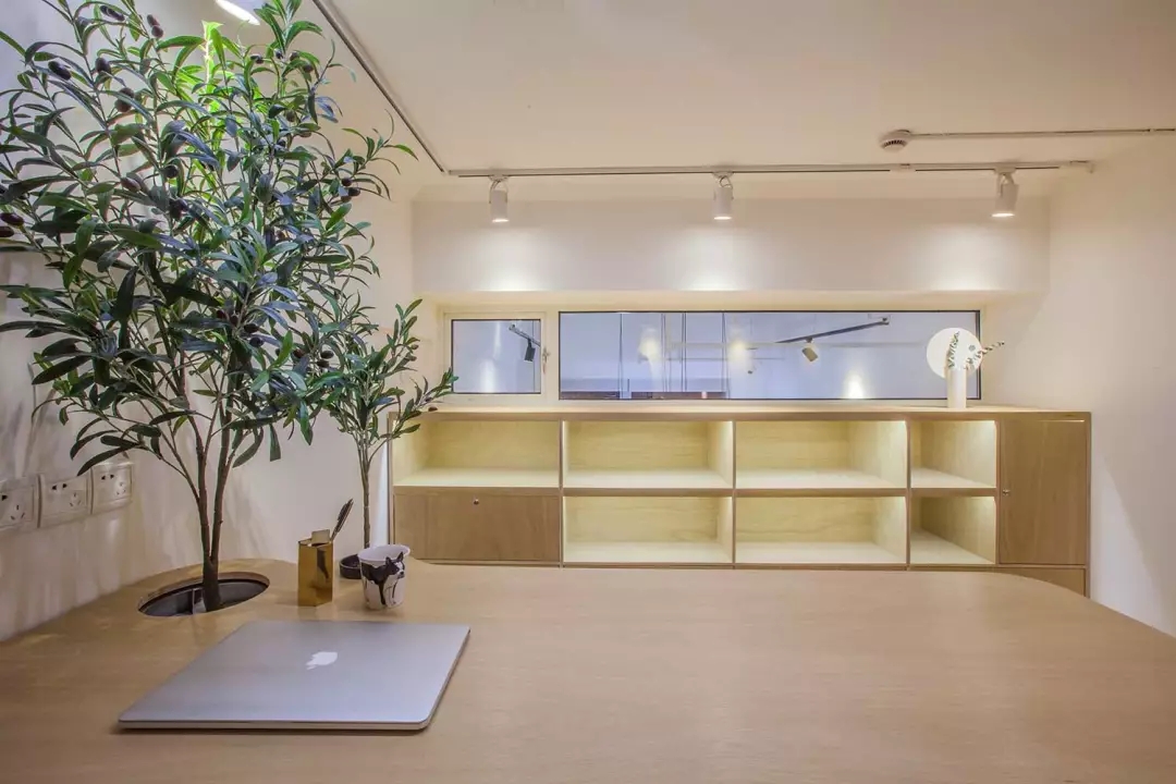 該項目位于上海市閔行區(qū)七寶萬科國際;我們希望工作室足夠的輕松、溫性、創(chuàng)意,于是通過顯性與隱性的符號對我們的目標進行構(gòu)建;空間用了大量溫暖的木色,并組成木質(zhì)的空間體塊,這些體塊以整個白色空間為背景,進行功能與空間節(jié)奏上的構(gòu)筑: