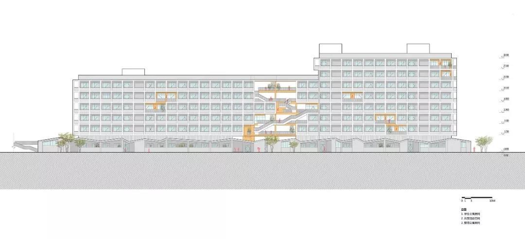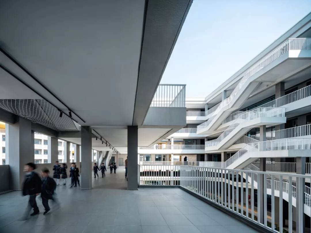 整個學(xué)校的概念策略、空間形態(tài)和場所定義描繪了一副全新生動的體驗(yàn)式教學(xué)圖景,設(shè)計(jì)作為實(shí)現(xiàn)的媒介為義烏新世紀(jì)外國語學(xué)校的師生提供了更多的教育體驗(yàn)和可能性。而貫穿其中的設(shè)計(jì)聚焦點(diǎn):教育類空間在城市高密度環(huán)境中的微妙立場、國際化教學(xué)體系與傳統(tǒng)國學(xué)文化兼容并重的有機(jī)教學(xué)空間建筑空間、面向未來的傳統(tǒng)空間體驗(yàn)營造,也是飛速城市化進(jìn)程中的中國所普遍面臨的問題,更是零壹城市一直以來并且會持續(xù)關(guān)注的高密度城市與教育空間問題的研究點(diǎn)。