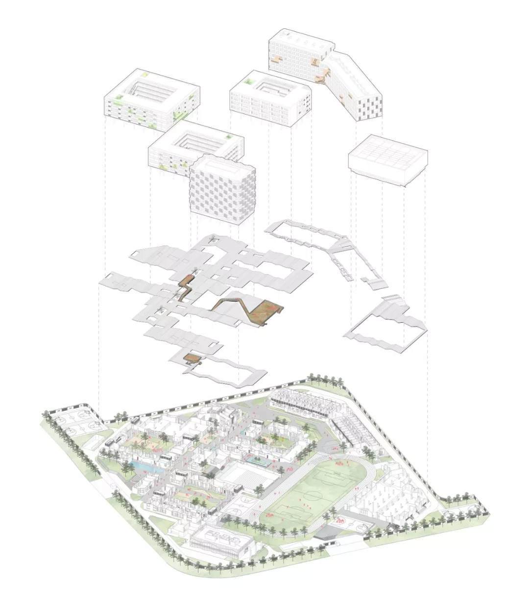 聚焦這一問題,設(shè)計(jì)首先對學(xué)校的功能和體量進(jìn)行分析,并整理出每一個教學(xué)單元和空間模塊,然后將各個教育用房單元根據(jù)自身所需的日照、采光、通風(fēng)以及朝向條件進(jìn)行合理高效的布置和擺放。