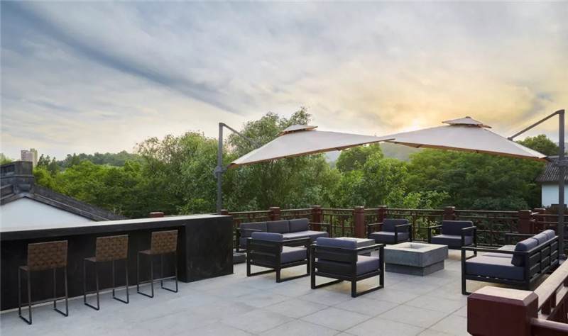 露臺是包廂功能場景向室外的延伸,為賓客提供了聚會絕佳場所。聽風(fēng)望水、閑看流云,讓人悠然自在,回歸詩意心境。