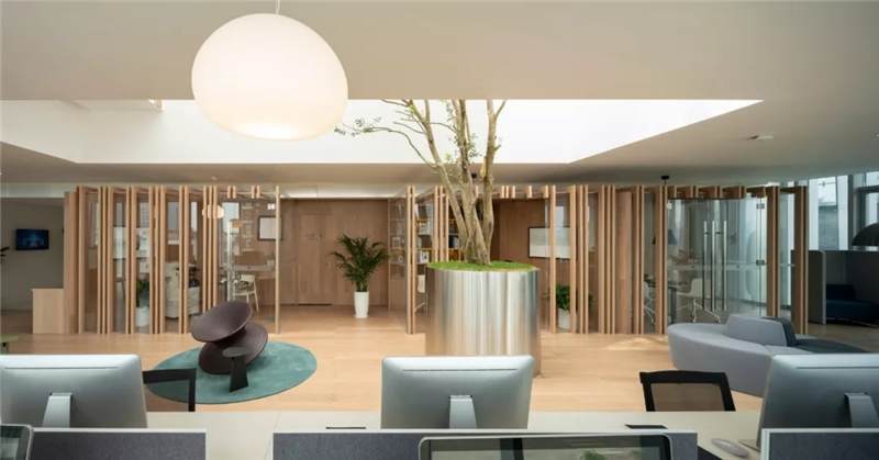 設(shè)計(jì)伊始,業(yè)主提出設(shè)計(jì)“具有未來(lái)感的新型辦公空間”的要求。“何為未來(lái)感”,在與業(yè)主的溝通協(xié)調(diào)時(shí),我們的想法漸趨一致。“未來(lái)感”,并非是科技的新與酷,而是空間的設(shè)計(jì)——空間觸感的營(yíng)造,生態(tài)與自由的氣息。