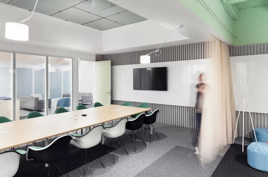 FT快捷的工作流程使辦公空間中的各種協(xié)作點更加容易 - 從入口處的大型開放式活動區(qū)域開始,繼續(xù)通過各種開放式會議區(qū)域流入休息區(qū)和休閑區(qū),創(chuàng)造了一個流動的工作環(huán)境。邊界沒有嚴格設(shè)定。
