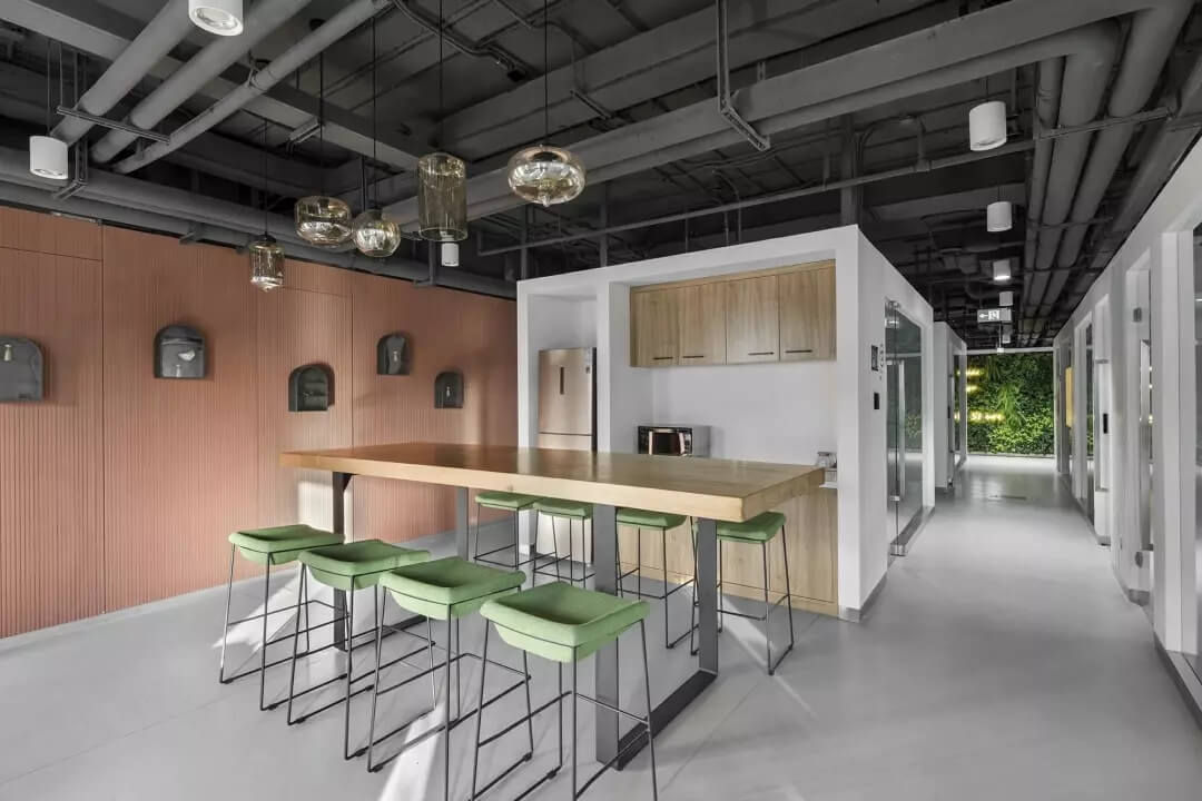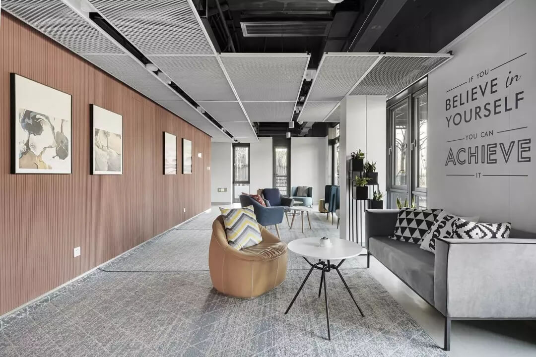在空間劃分上,我們遵循城市綠色生態(tài)美學(xué),充分利用創(chuàng)新技術(shù)進(jìn)行模塊化設(shè)計(jì),將裝配式建造、節(jié)能低碳等許多新理念應(yīng)用到整個(gè)空間中去,將整體空間劃分成商務(wù)區(qū)、辦公區(qū)和休閑區(qū),具體到擁有獨(dú)立辦公室65個(gè),辦公工位464個(gè),會(huì)議室5個(gè),以及水吧、咖啡廳、休息艙、茶室、電話亭等共享區(qū),我們想要脫離傳統(tǒng)辦公空間的單調(diào)枯燥,讓一站式的休閑服務(wù)和辦公完美結(jié)合,觸達(dá)現(xiàn)代人內(nèi)心的深層需求,從而使整體設(shè)計(jì)方案在保持高品質(zhì)的同時(shí)做到高效、低成本。