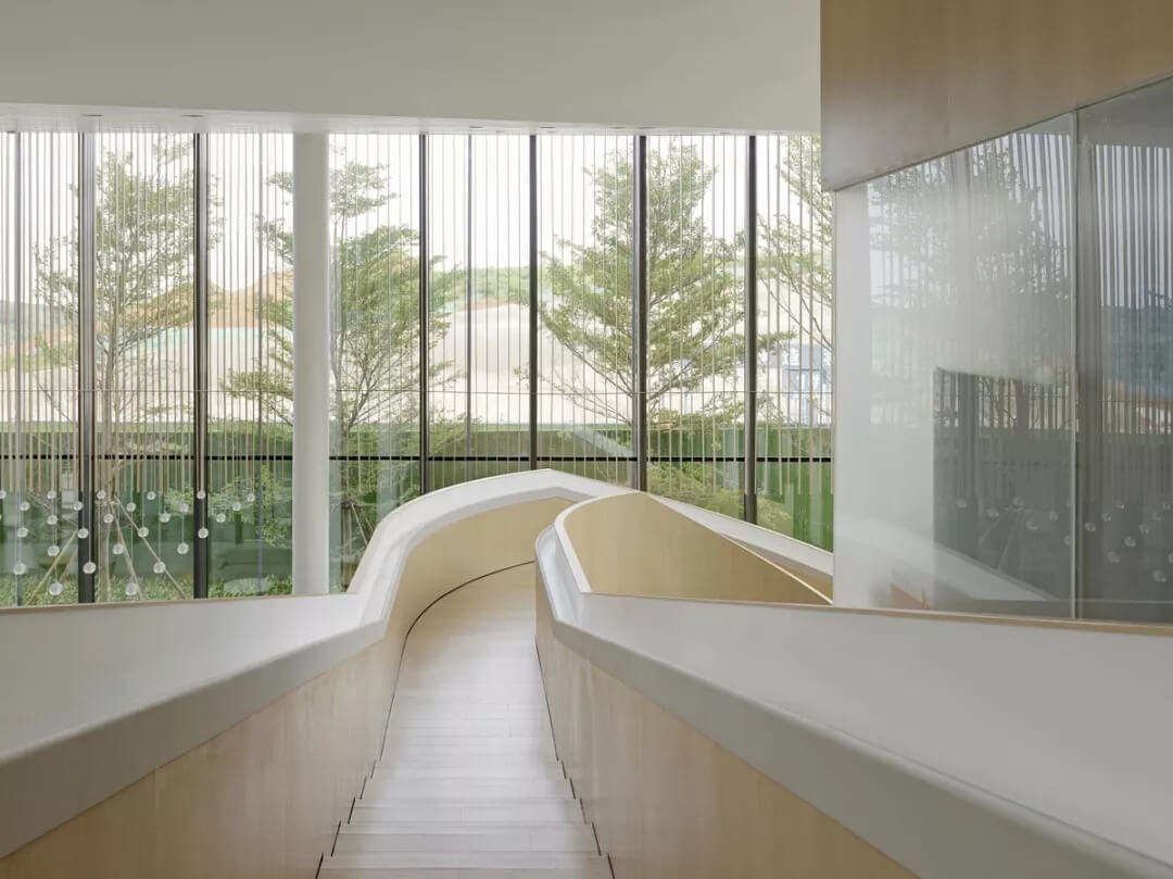 通過對建筑與室內(nèi)整體考慮、通篇布局,傳統(tǒng)的客家村落文化在現(xiàn)代的設(shè)計語言中再次被講述出來,游走于整個建筑之中,讓人體驗到的是充滿流動性的空間感受。