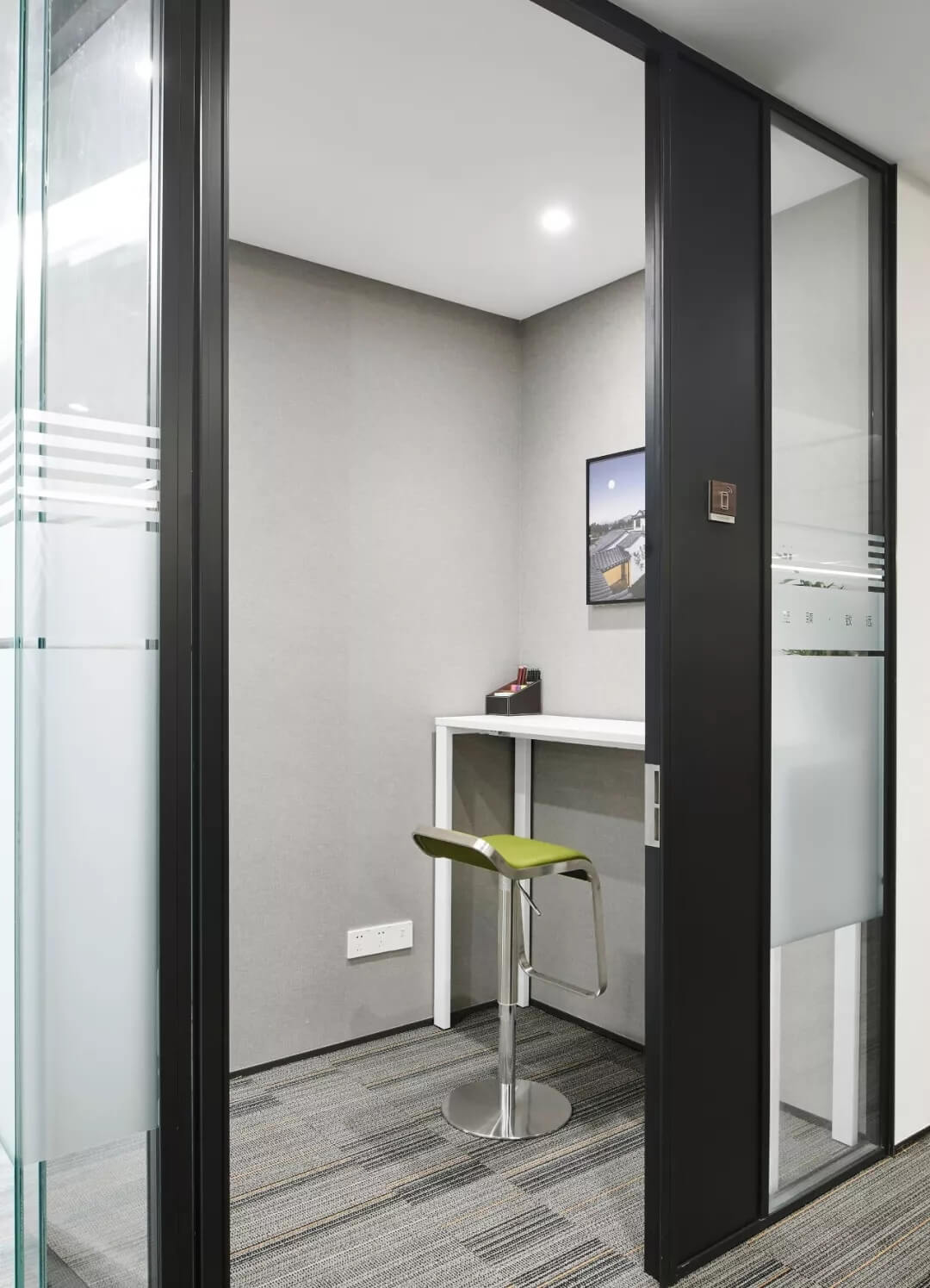 在空間規(guī)劃和功能布局上,兩側(cè)光線條件良好的區(qū)域設(shè)置開敞辦公區(qū);核心筒區(qū)增設(shè)存儲(chǔ)空間、電話間,洽談空間,會(huì)議室,滿足各種洽談會(huì)議需求;電梯集散口設(shè)置樓梯吹拔等候區(qū)、茶水區(qū)、景觀小品等開放共享和展示空間;采光較弱的中間區(qū)域,插入玻璃盒子做會(huì)議室。整個(gè)平面布局,在原建筑條件基礎(chǔ)上,融合融創(chuàng)需求,級(jí)級(jí)遞進(jìn),相互銜接。