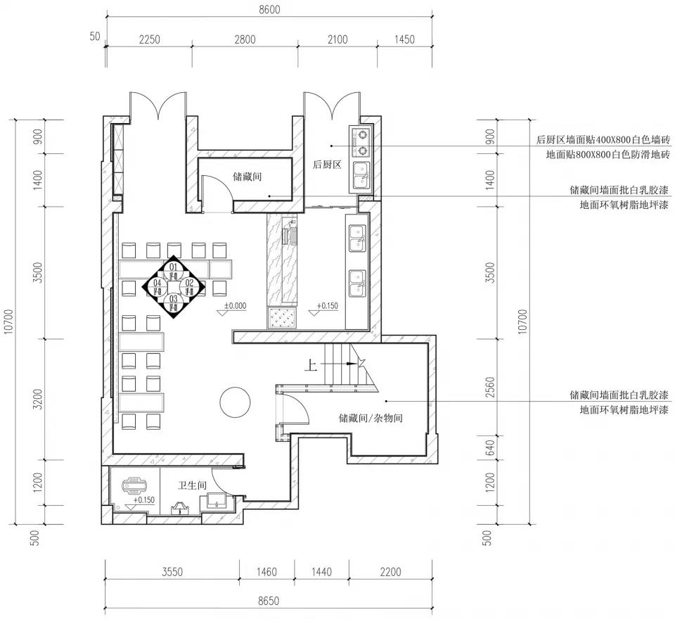 在一層和二層的主要就餐區(qū)設(shè)計上,我們用藍色的頂面定出空間的基本色調(diào), 其余的空間則選擇:不透明-鏡面反射-金屬材質(zhì)反射-半透明材質(zhì)-材質(zhì)漫反射-開窗引光-透明家具共同營造出波光海面的效果。因此在空間效果的營造上,對這幾個部分的材質(zhì)選用和做法成為這個設(shè)計的核心技術(shù)要素。