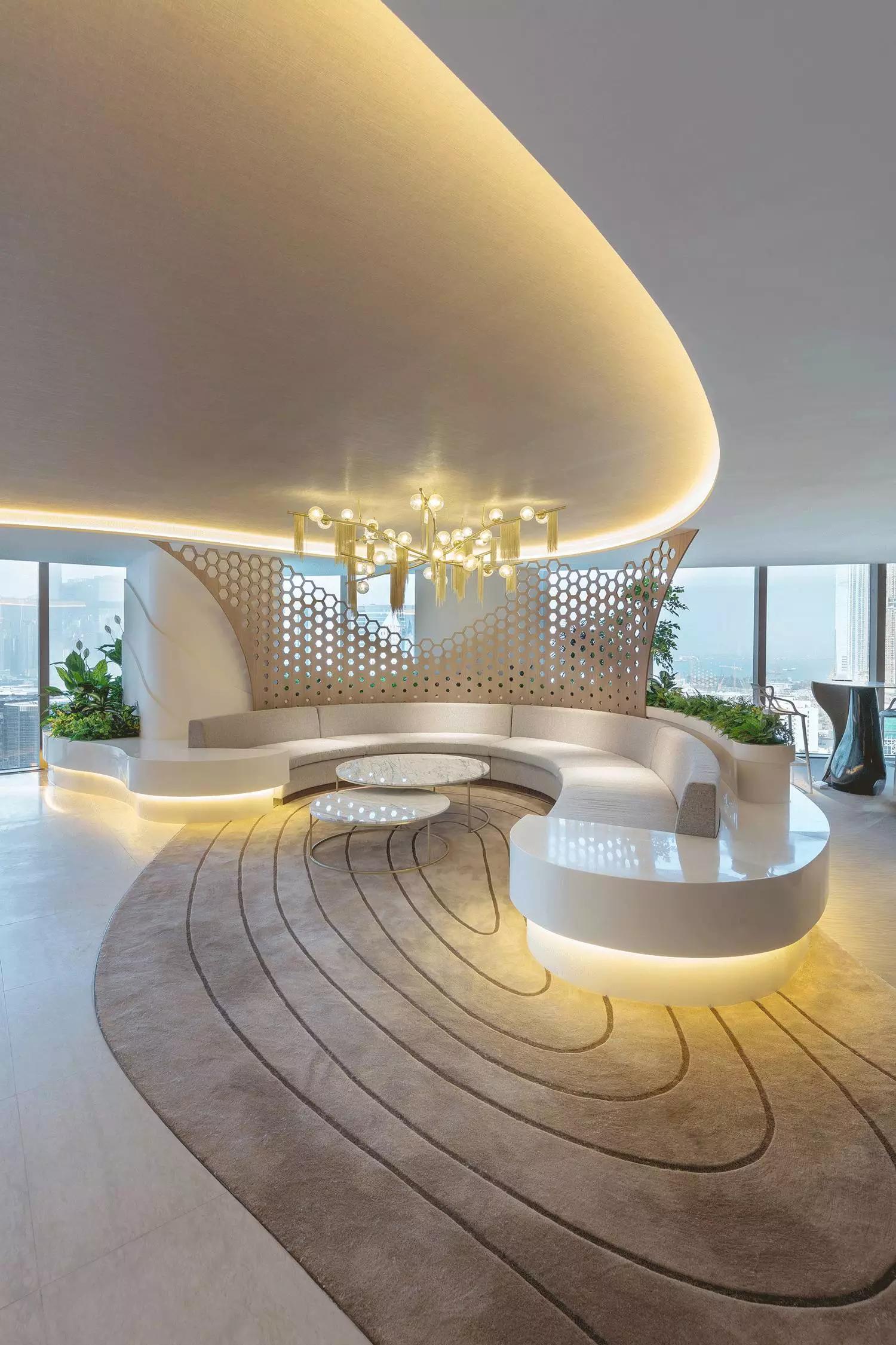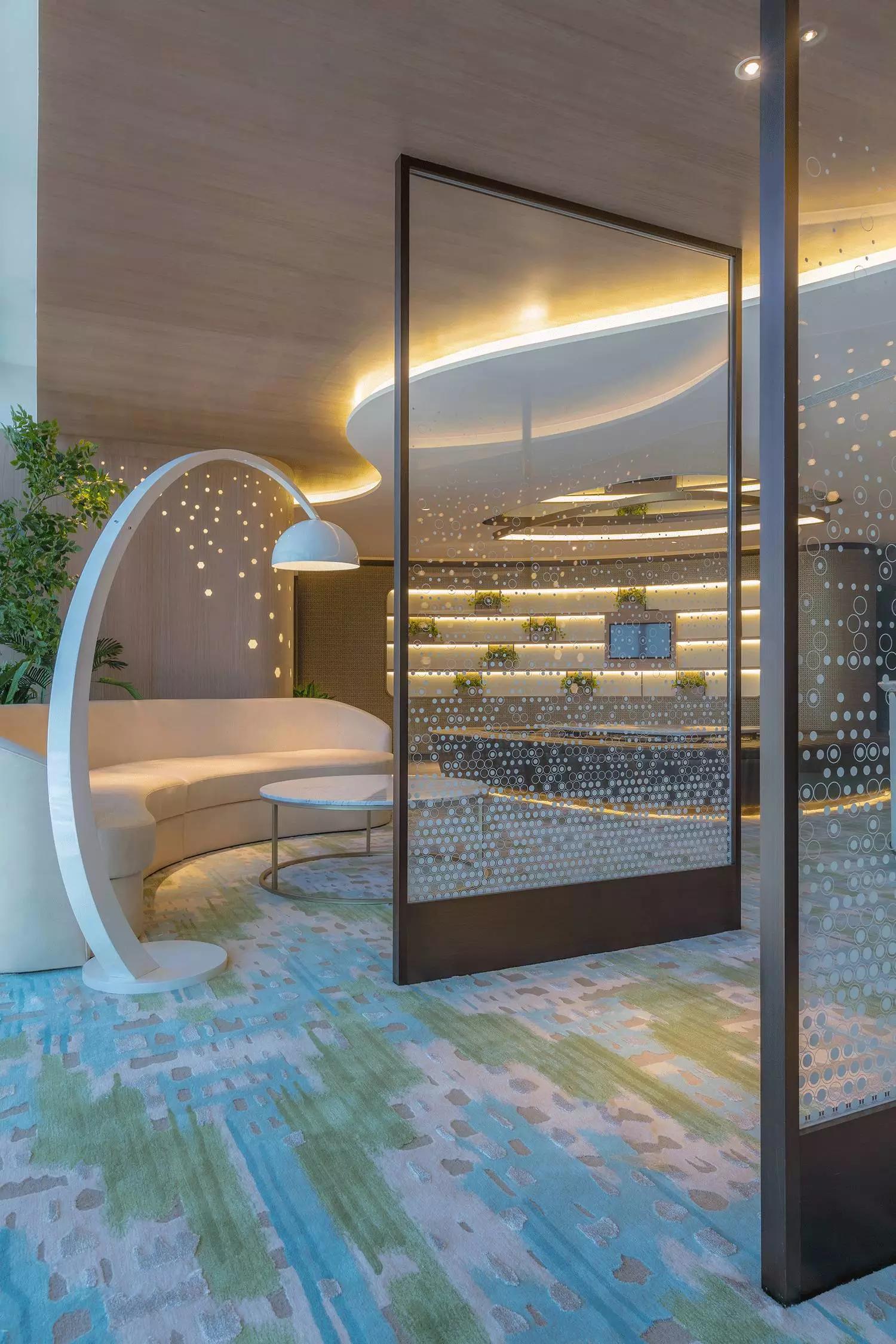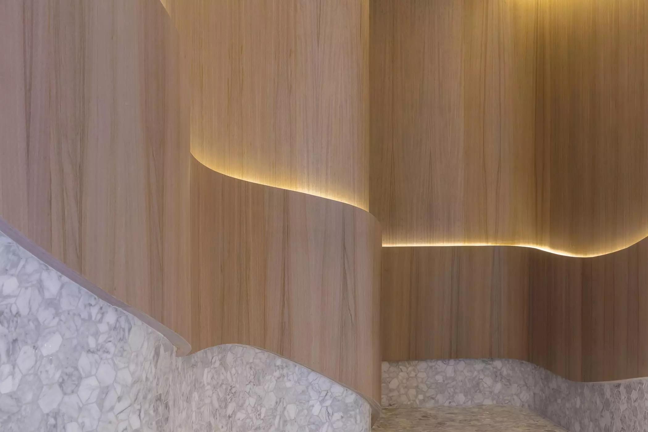波浪起伏的輪廓舒適宜人,以材質和色彩轉換空間的調性,薈萃最恬適的元素塑造循序漸進的氛圍體驗,猶如憩時份花園回廊,緩和心靈才能得以配合各種療程。
