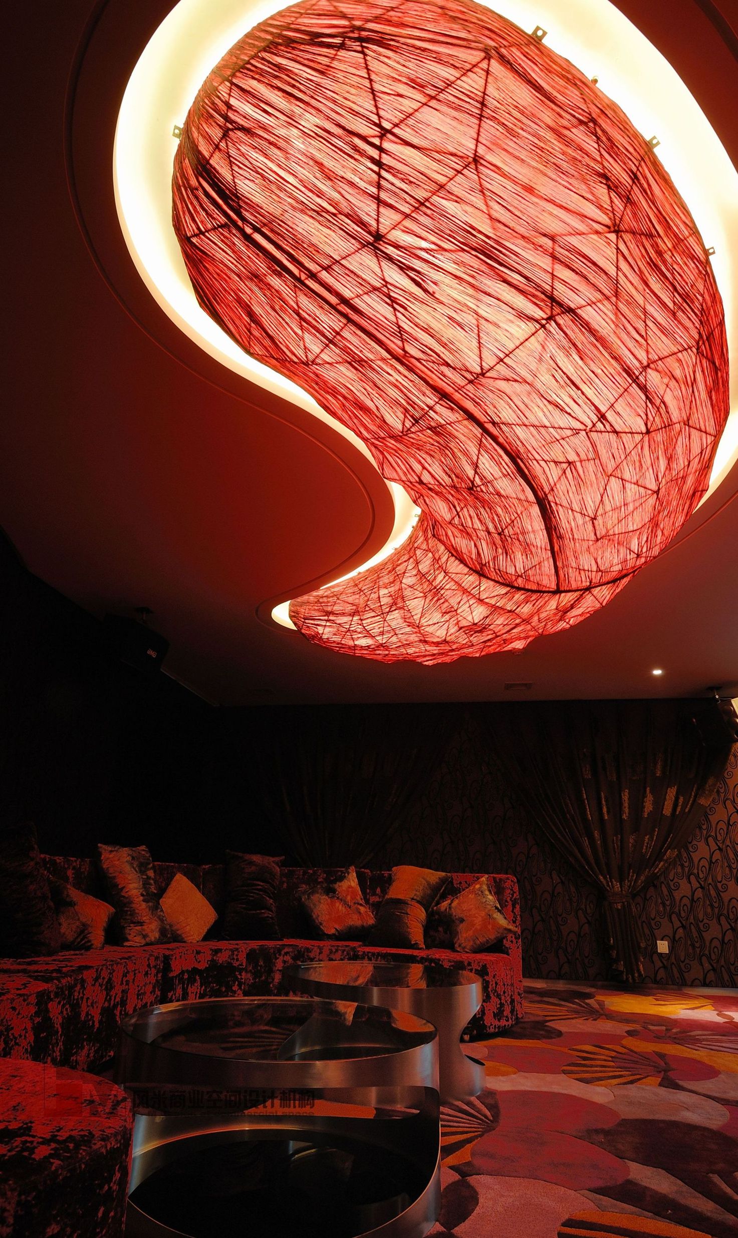 現(xiàn)代人的價(jià)值觀是一個(gè)在顛覆中發(fā)展的時(shí)期,人們的觀念在顛覆,消費(fèi)的觀念亦在成熟中顛覆。所以在這次設(shè)計(jì)中我們要通過另一種美學(xué)設(shè)計(jì)手法再一次顛覆人們的審美價(jià)值觀。在設(shè)計(jì)中空間內(nèi)以超出常規(guī)的比例關(guān)系的形態(tài)來表露意識(shí)形態(tài)。在材料排布上以非慣性的處理手法來獲得人們對新形餐飲空間的認(rèn)知,在色彩運(yùn)用上以單體空間的色相統(tǒng)一來刺激人們對空間的色彩印象,在家具的造配上追求戲劇化的高度,奢華夸張的概念。使空間在整體上達(dá)到一種戲劇化的舞臺(tái)效果,讓人們游走其中產(chǎn)生一種非常規(guī)概念的心理感受,從而感受到空間的美感。